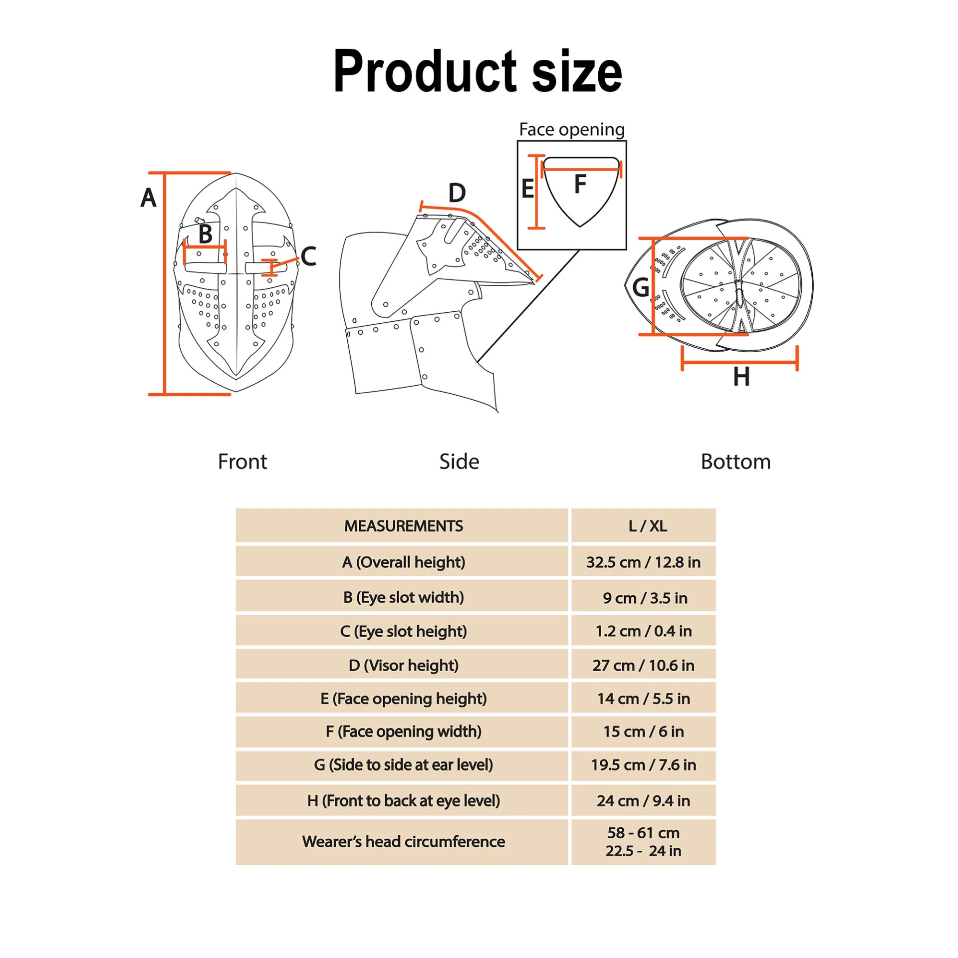Cada Casco Bascinet Visado se fabrica a mano de forma individual, por lo que pueden producirse ligeras variaciones en el acabado y las dimensiones. Esto contribuye a su autenticidad.